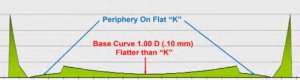 À la fin des années 1980, Richard Wlodyga a fourni une description plus détaillée en concevant une lentille avec un rayon de courbe de base plat (BOZR), un rayon de courbe inverse ≥ 1,00D plus serrée que la courbe de base, et une courbe secondaire plus serrée de 3,00D pour contrôler le centrage. La conception à trois courbes de Wlodyga était intéressante, mais il n’a pas réussi à la faire fabriquer avec précision comme Fontana avant lui. Il a contacté Nick Stoyan de Contex Labs. Leur association a abouti à un produit commercialement viable – une lentille de 9,6 mm, 6,0 mm OZ, avec une courbe périphérique asphérique de 0,50 mm de large, et l’introduction d’une « courbe inverse » qui relie ces courbes entre elles. Finalement, Stoyan a fait breveter cette technologie de conception. La philosophie d’adaptation des lentilles Contex était basée sur les lectures kératométriques. La lentille initiale était ajustée 1,50D plus plate que le K le plus plat, puis des lentilles de plus en plus plates ont été utilisées jusqu’à ce que la correction finale soit atteinte. Ce système a été baptisé « orthokératologie accélérée ».