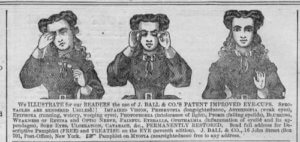 Une nouvelle invention créée par le Dr J. Bell (Ball?) en 1850 était une cupule oculaire munie d’un piston monté sur ressort pour frapper la cornée à plat à travers l’œil fermé. Il semblerait que ce fameux Dr J. Bell est une inspiration du personnage de fiction Sherlock Holmes.